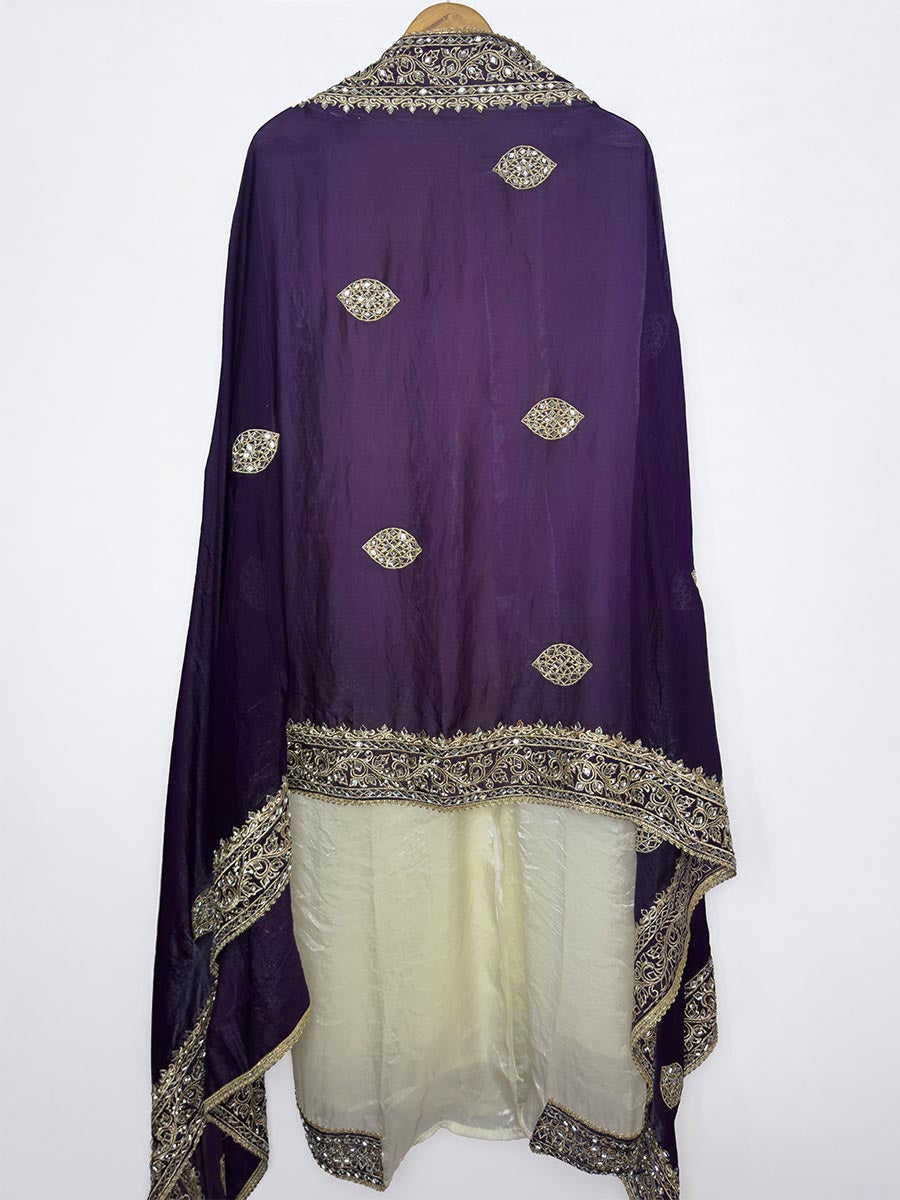 Shirt: Glass organza with delicate zari embroidery and mirror embellishments