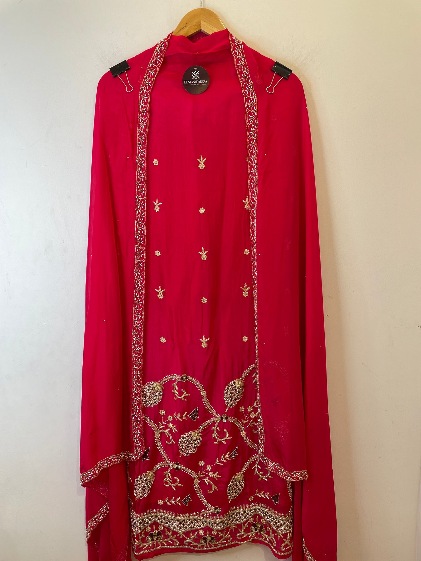 • Dupatta: Organza dupatta with stone highlights and handworked border