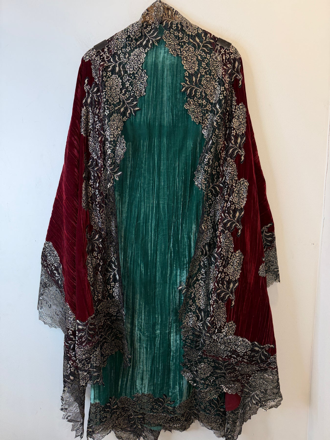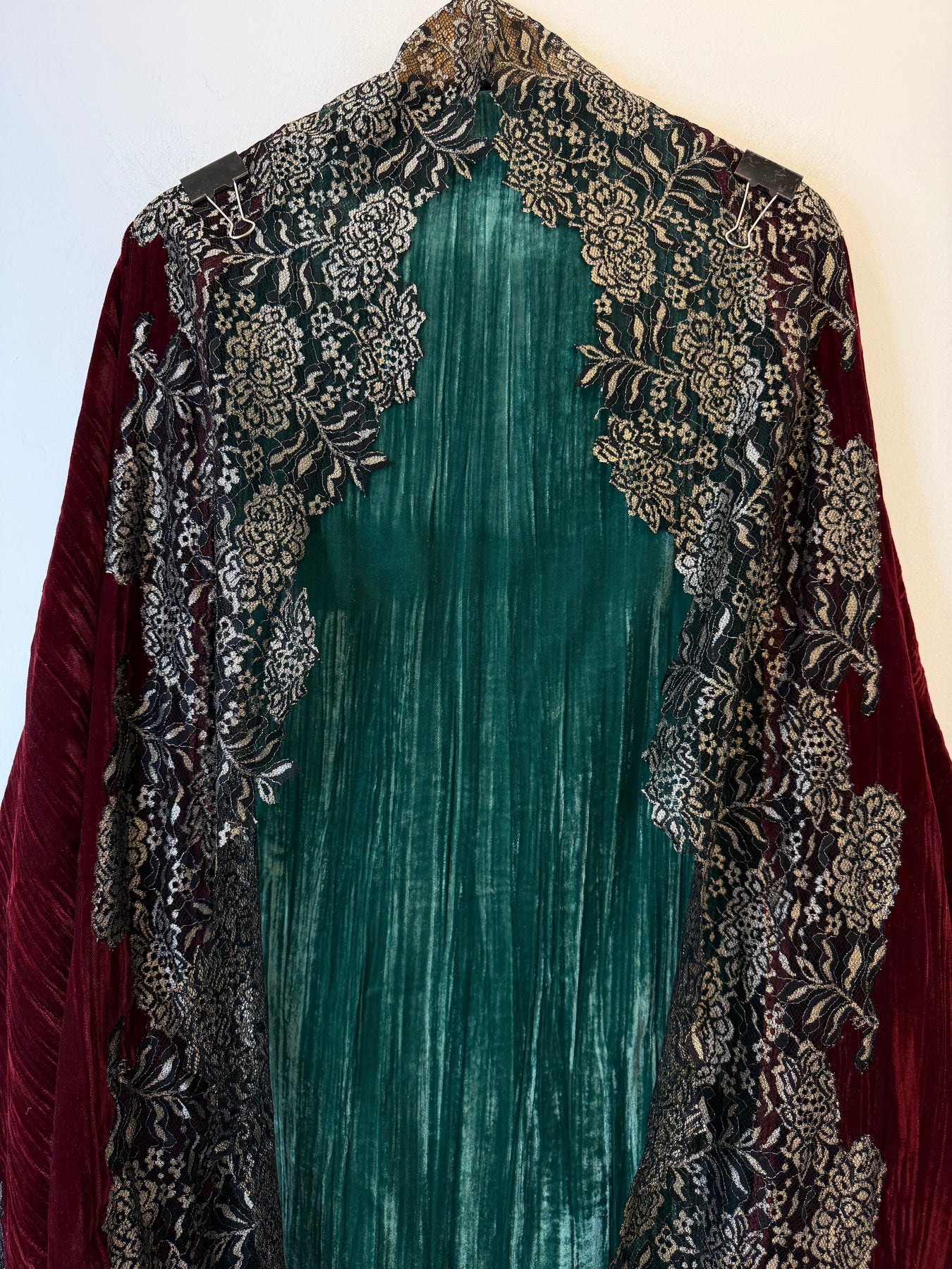• Shirt: Crushed velvet shirt with elegant Chantilly lace finishing on the ghera