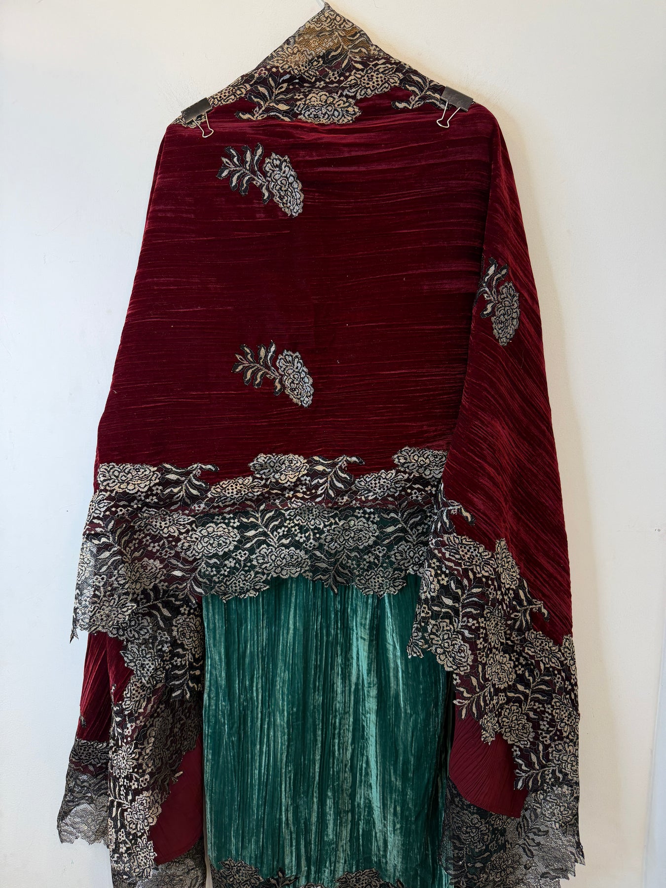 • Dupatta: Crushed velvet dupatta featuring contrasting Chantilly lace detailing