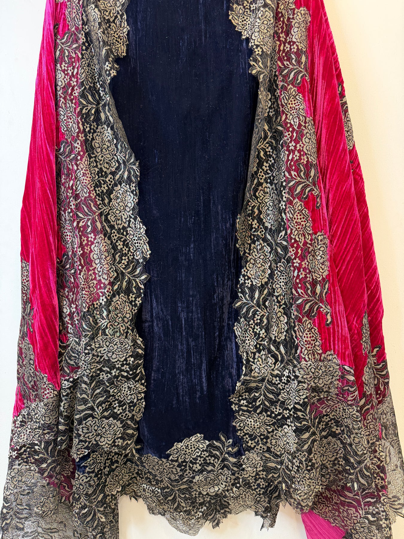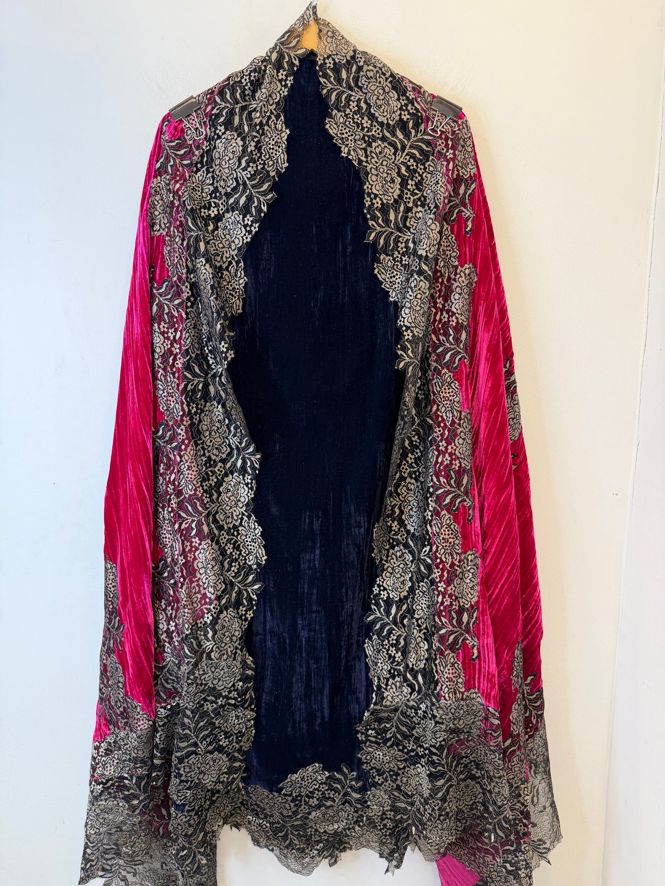 • Dupatta: Crushed velvet dupatta featuring contrasting Chantilly lace detailing