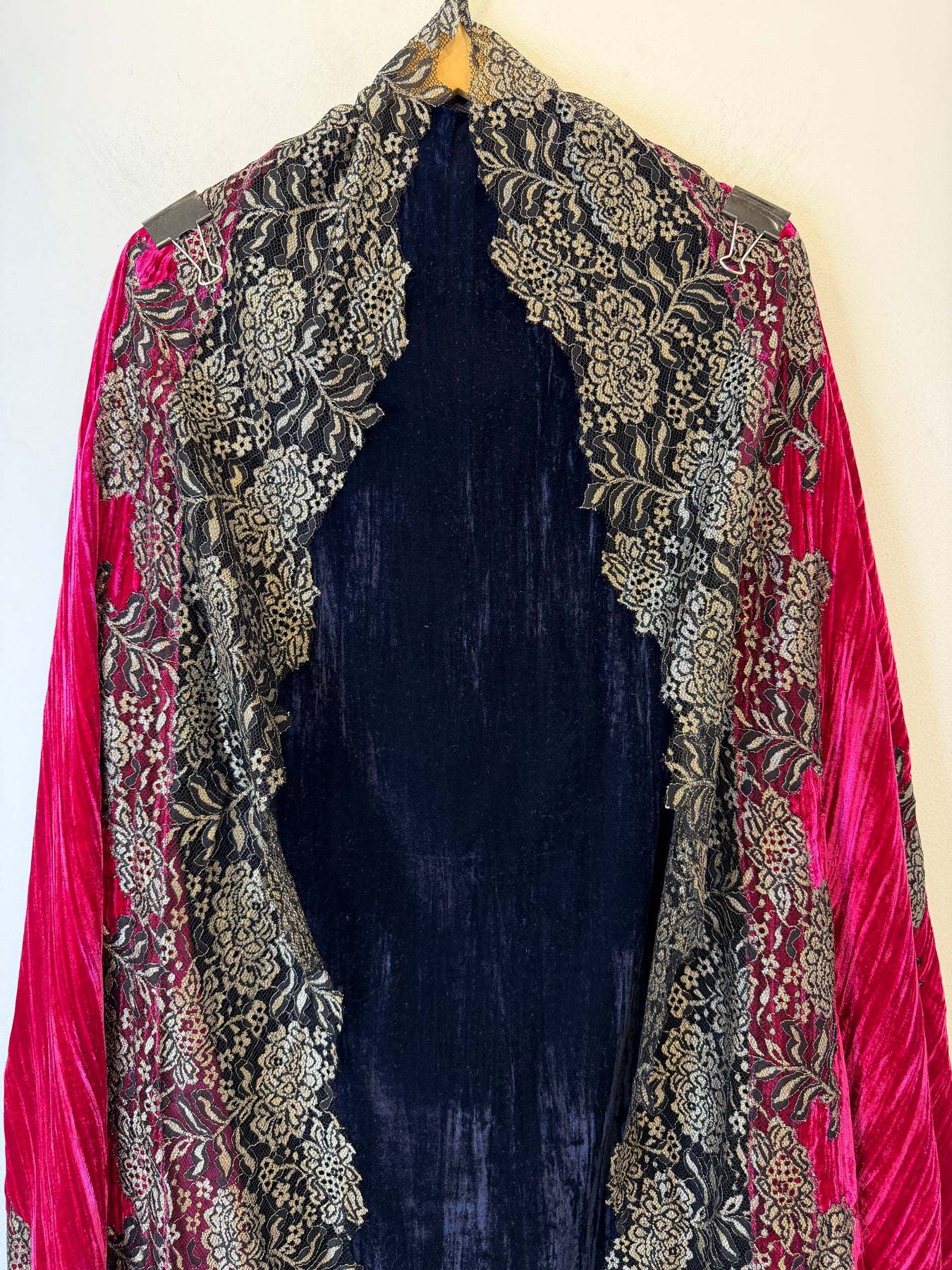 Aneira – Navy Blue Crushed Velvet Lace Suit