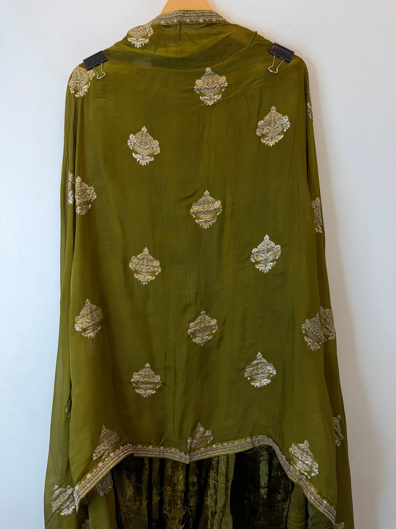 Dupatta: Organza dupatta featuring beautiful Banarasi bootis