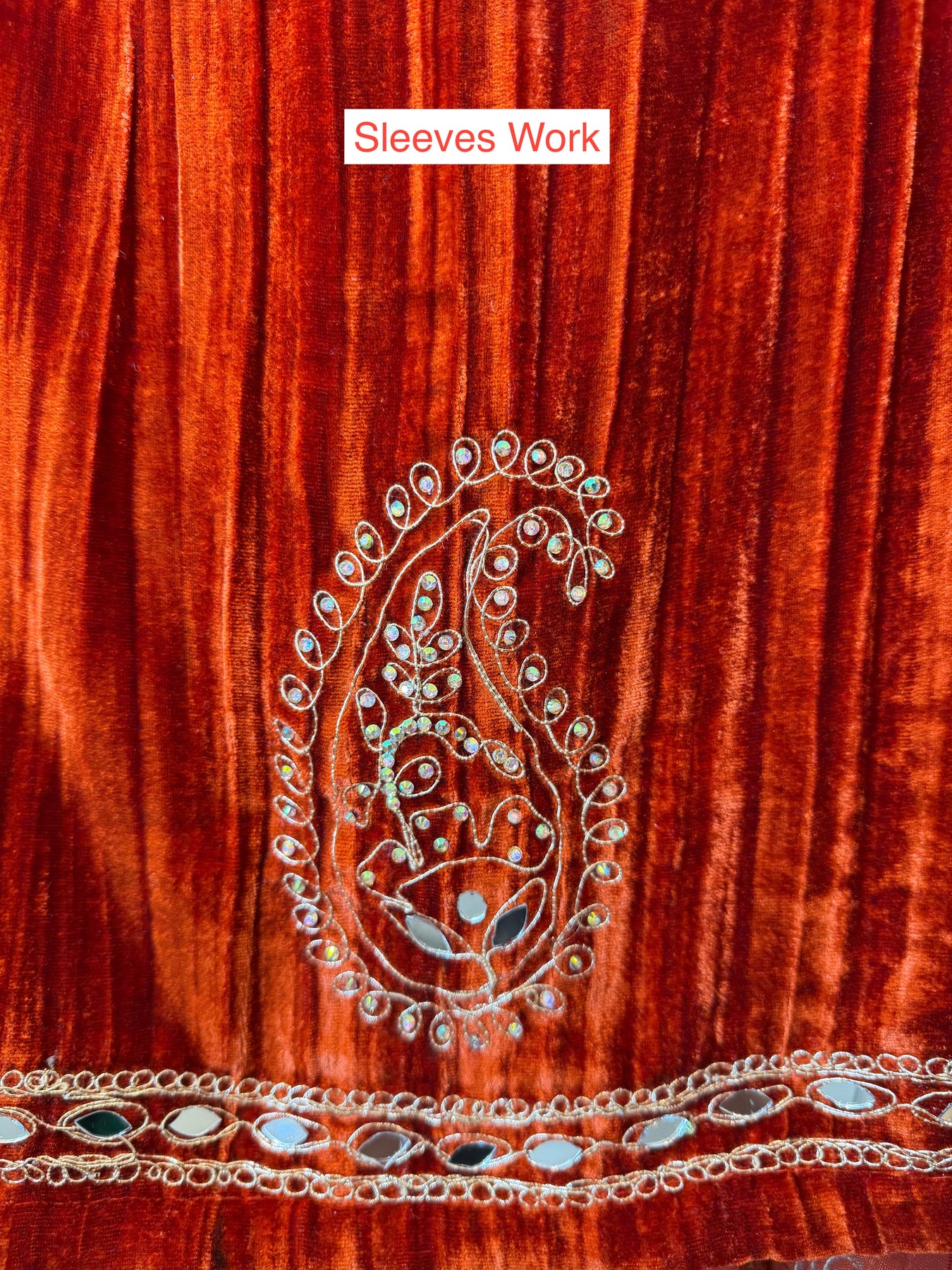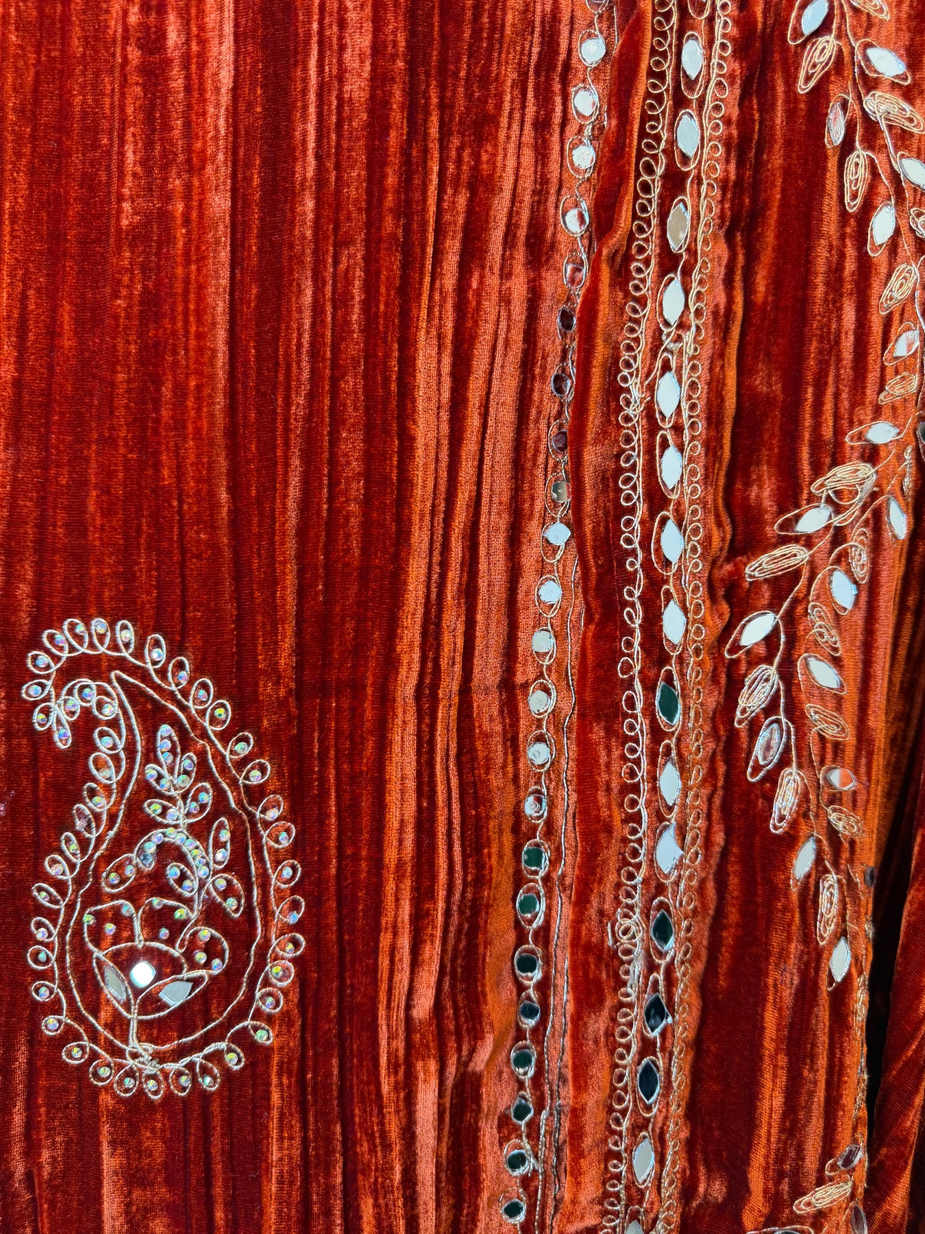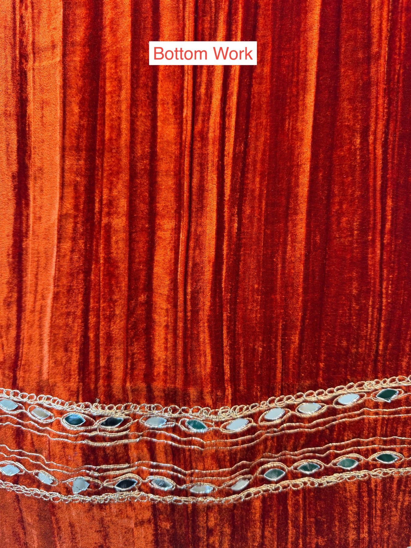 Bottom: Crushed velvet bottom with coordinated embroidery
