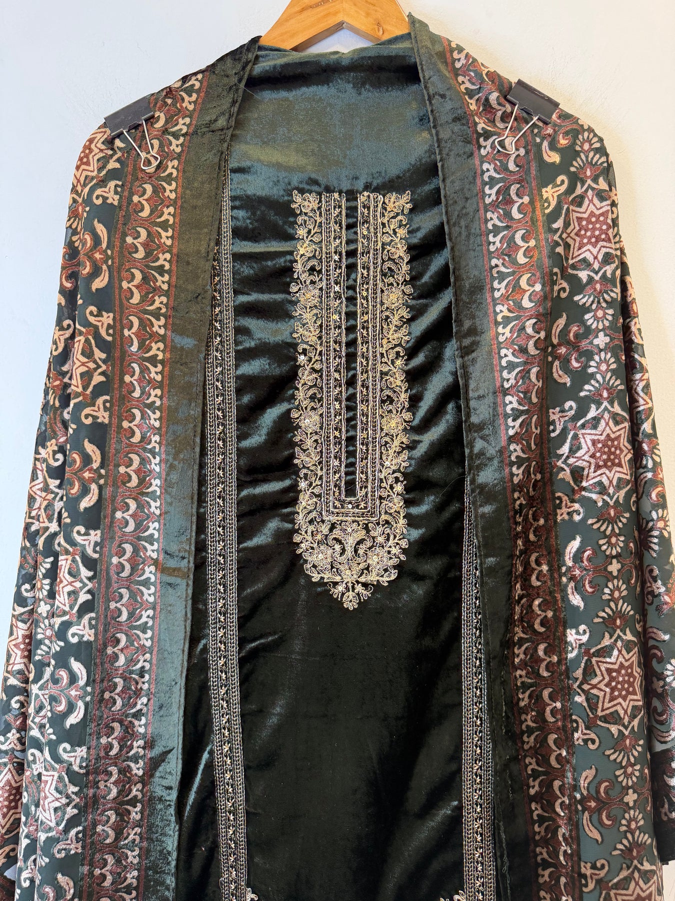Dupatta: Brasso velvet stole-style dupatta adding a rich texture