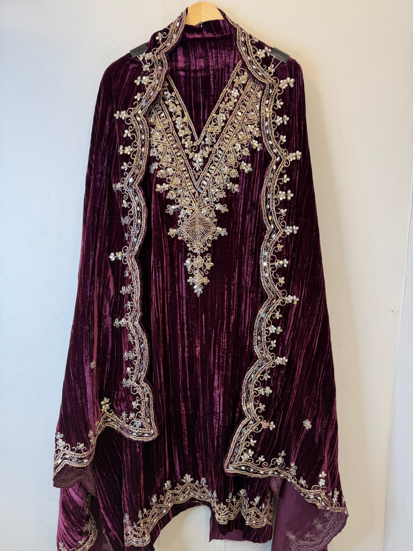 Zareen – Crushed Velvet Mirror Work Suit