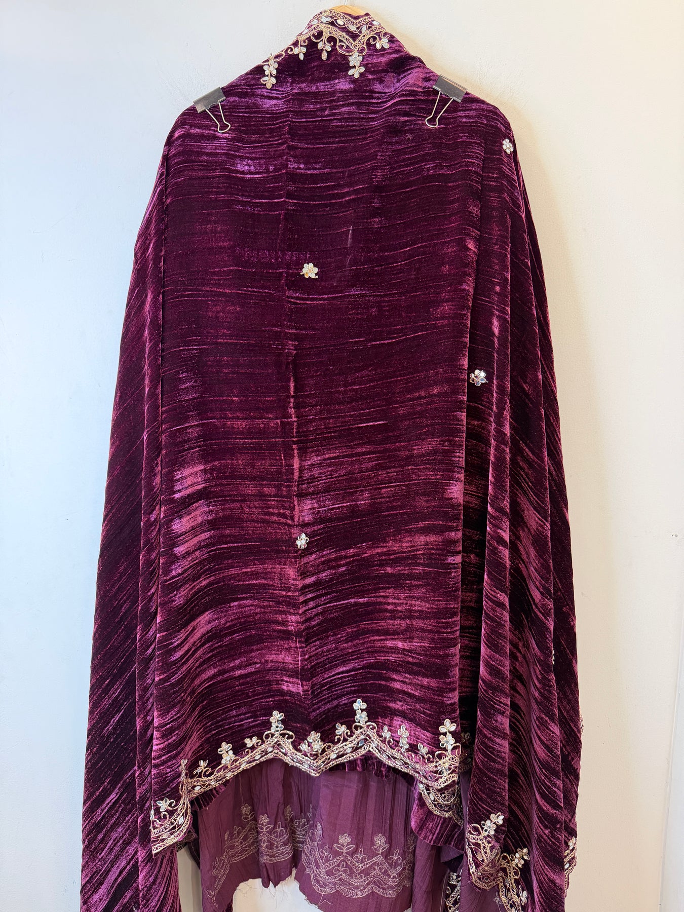 • Dupatta: Crushed velvet dupatta featuring mirror and dori work with elegant scalloped borders