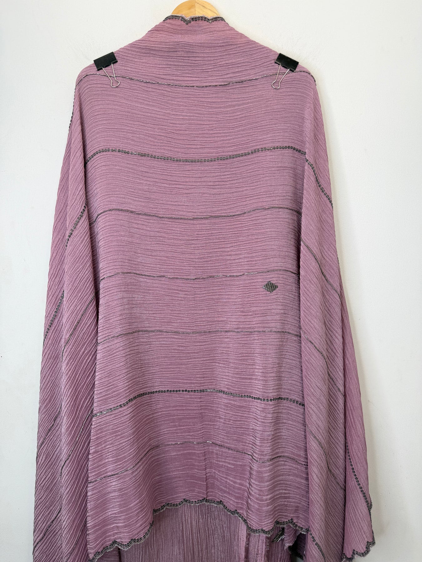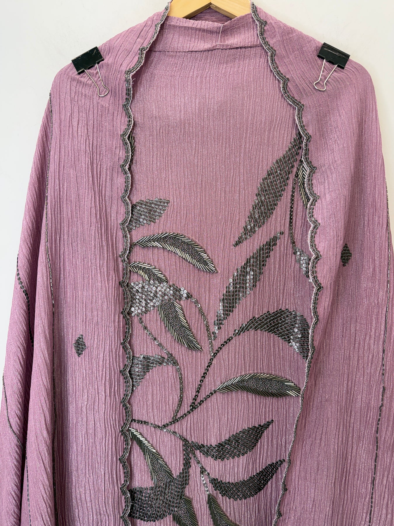 Dupatta: Crushed tissue dupatta featuring handworked scalloped borders and all-over handwork detailing