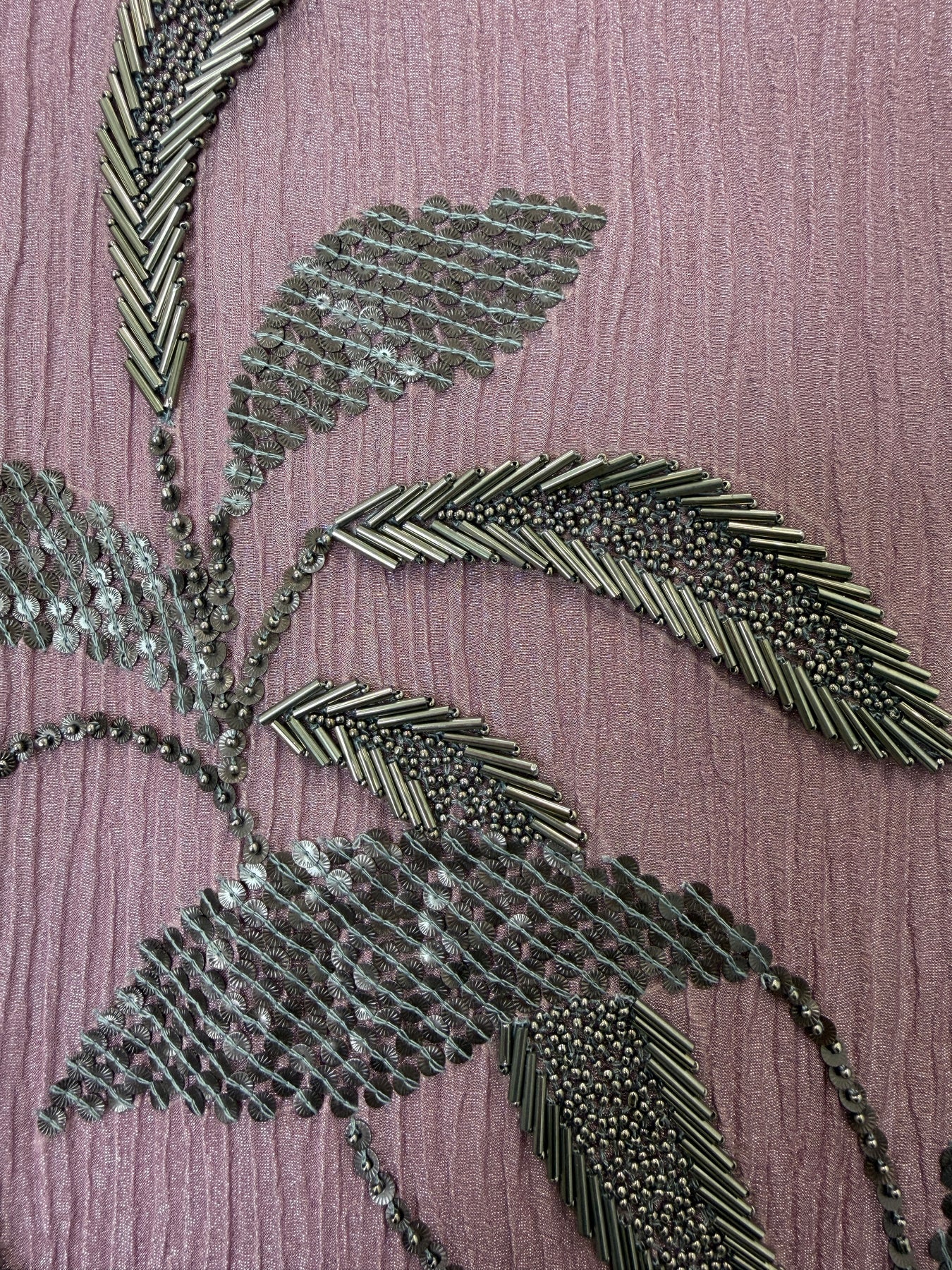 Shirt: Crushed tissue shirt with metallic handwork all over; sleeves also embellished with matching handwork