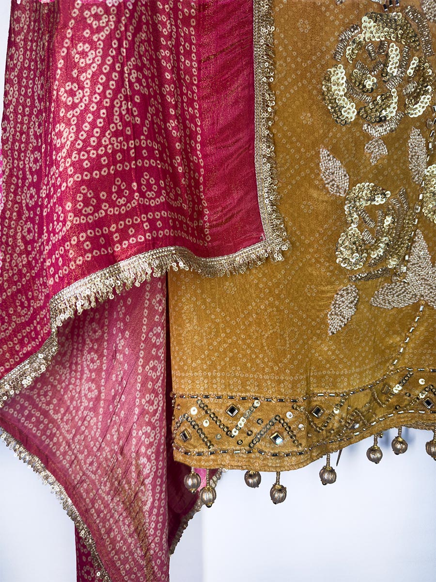 • Dupatta: Crushed tissue with Bandhni design & gotta finish