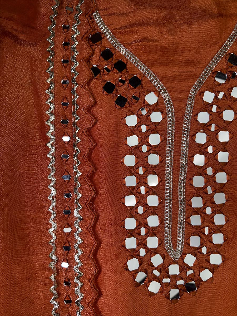 • Dupatta: Tissue shimmer with cutwork edges & mirror detailing