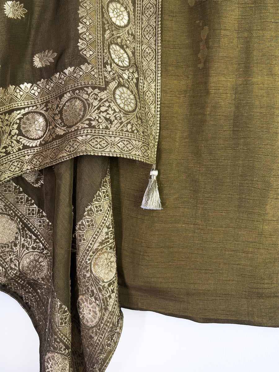 Dupatta: Silk dupatta crafted in Banarasi weave with intricate detailing.