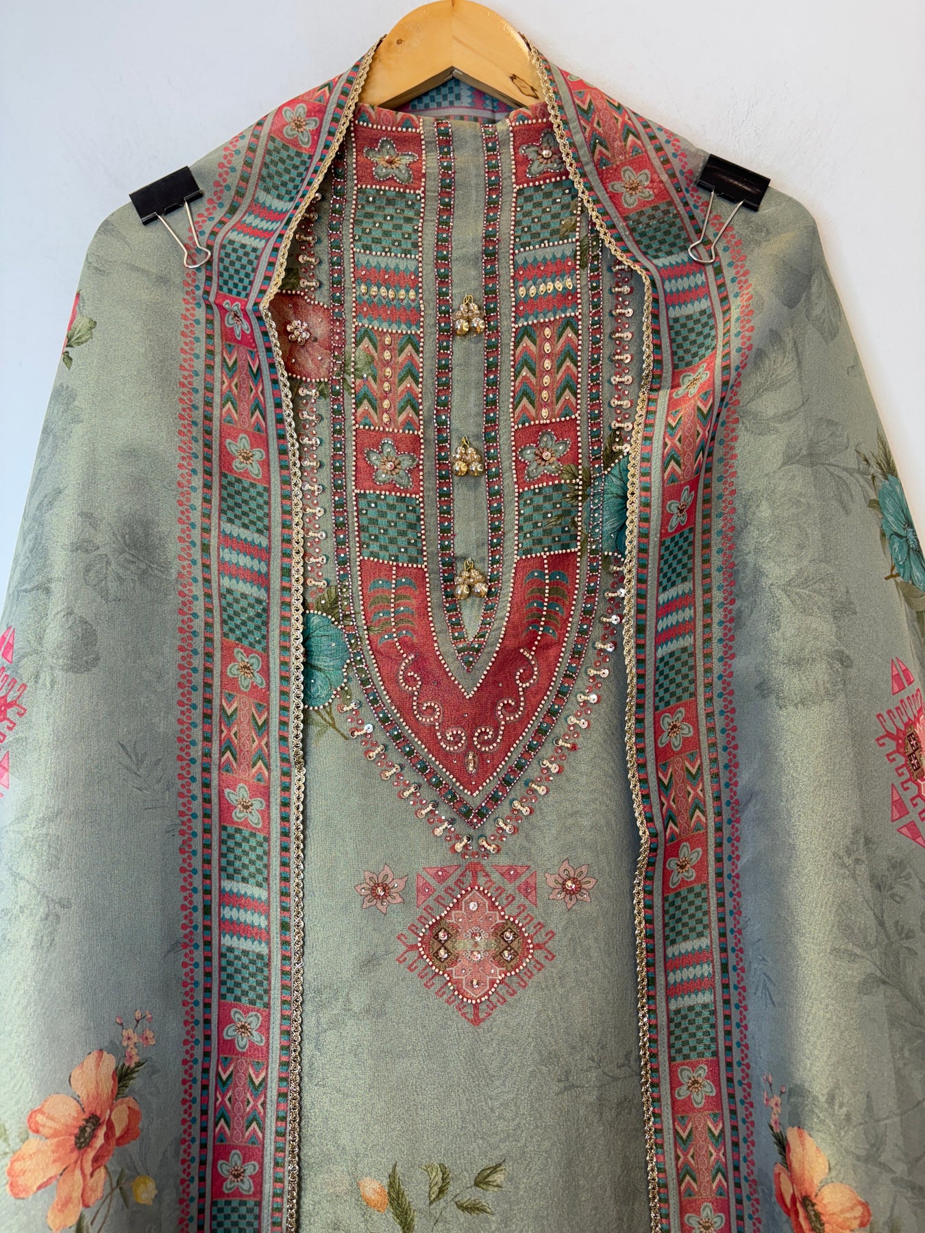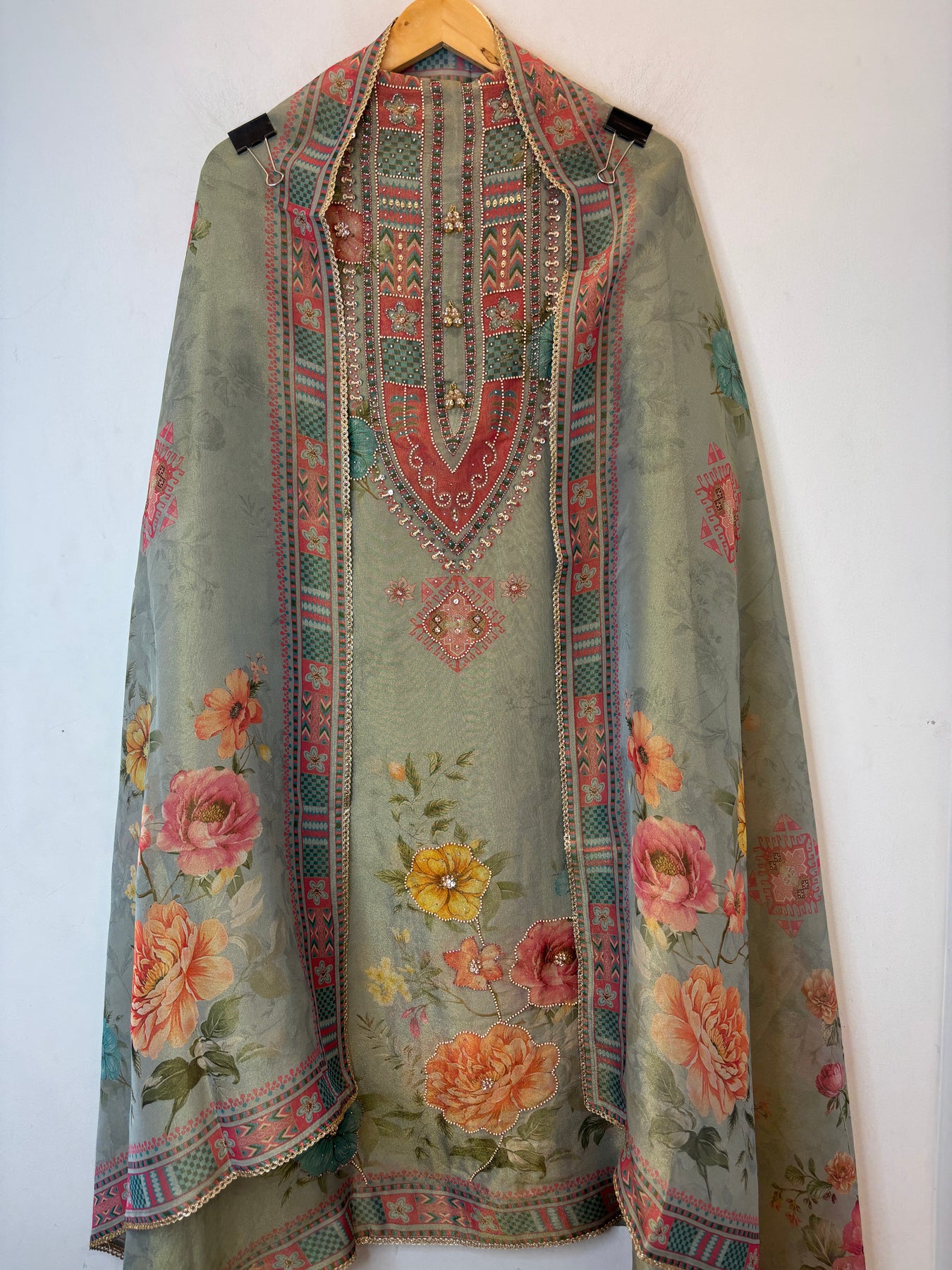 • Dupatta: Digitally printed dupatta with lace finishing