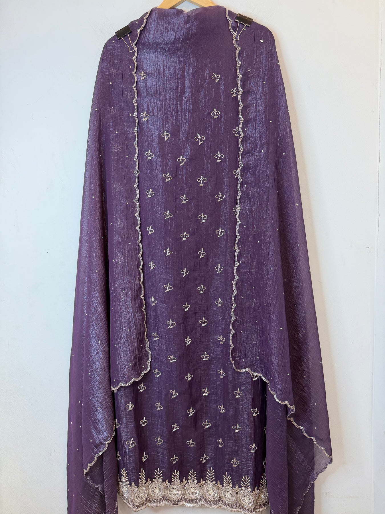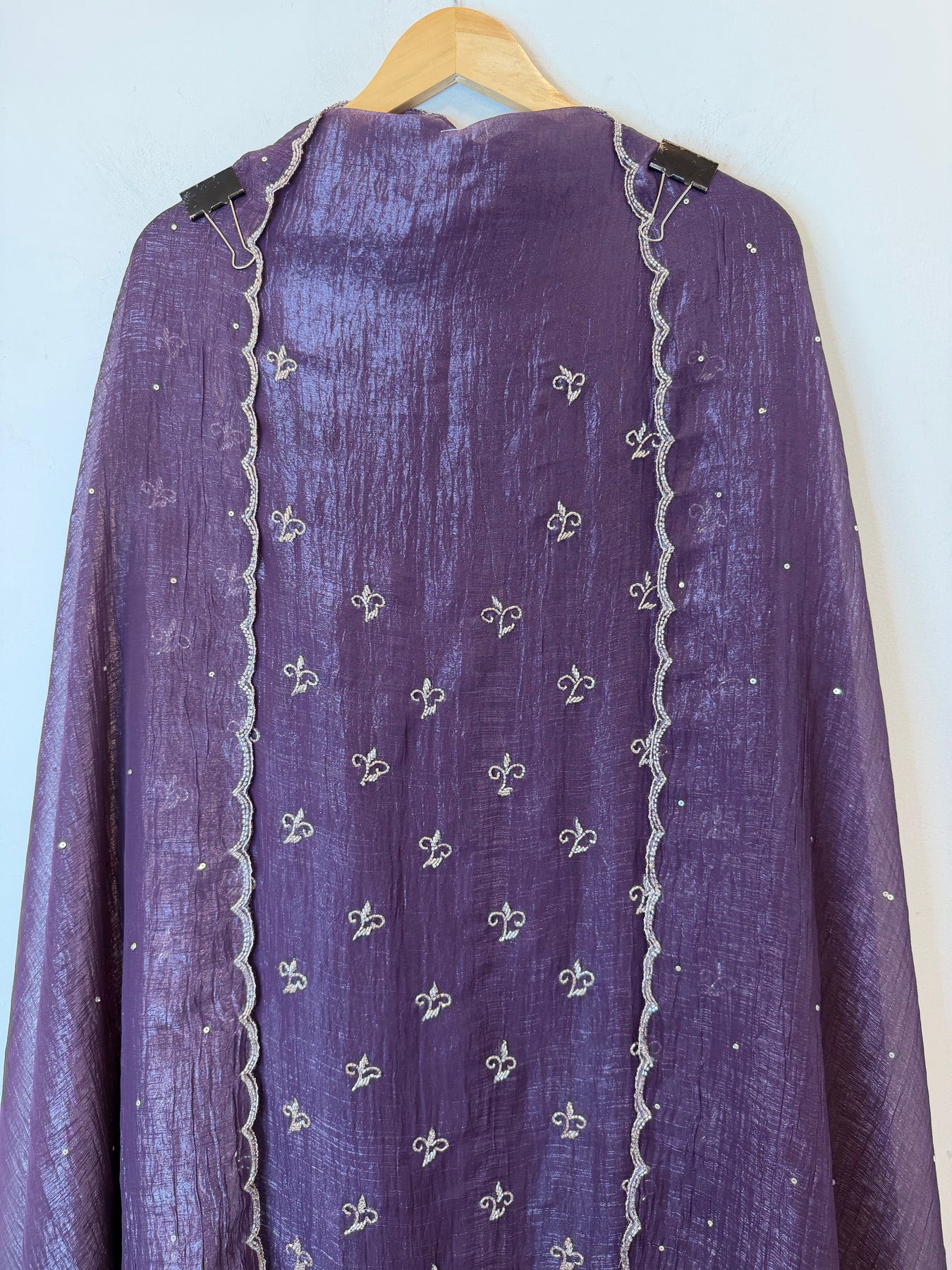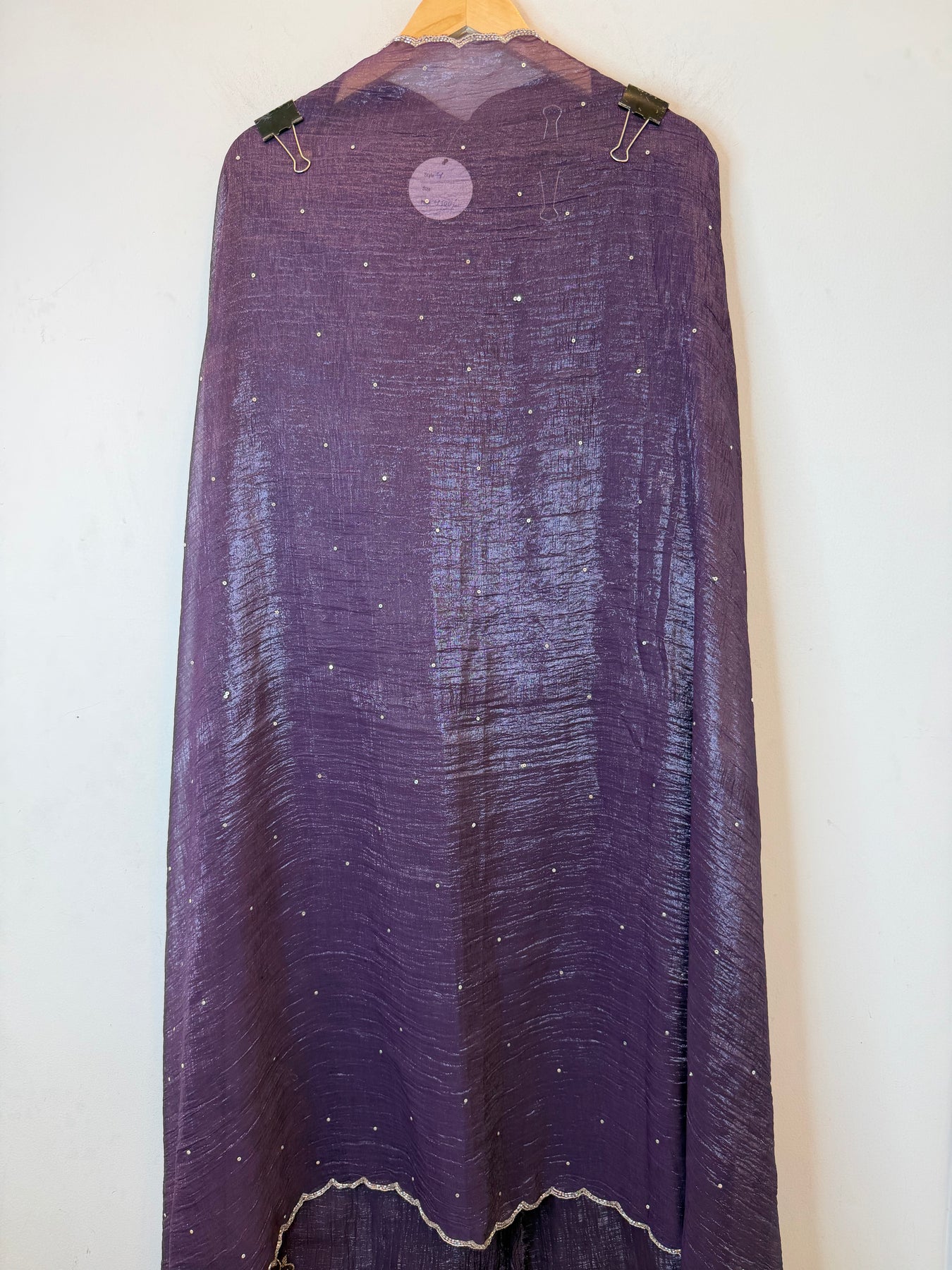 Dupatta: Crushed tissue dupatta with cutdana scalloped edging and sequin highlights