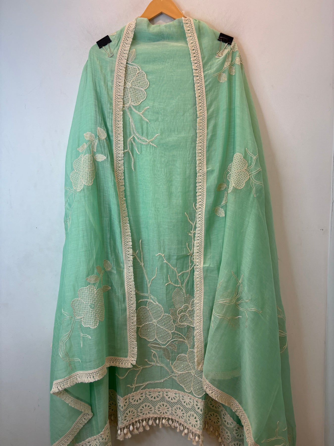 Zarevia – Mint Green Mul Cotton Embroidered Tassel Suit