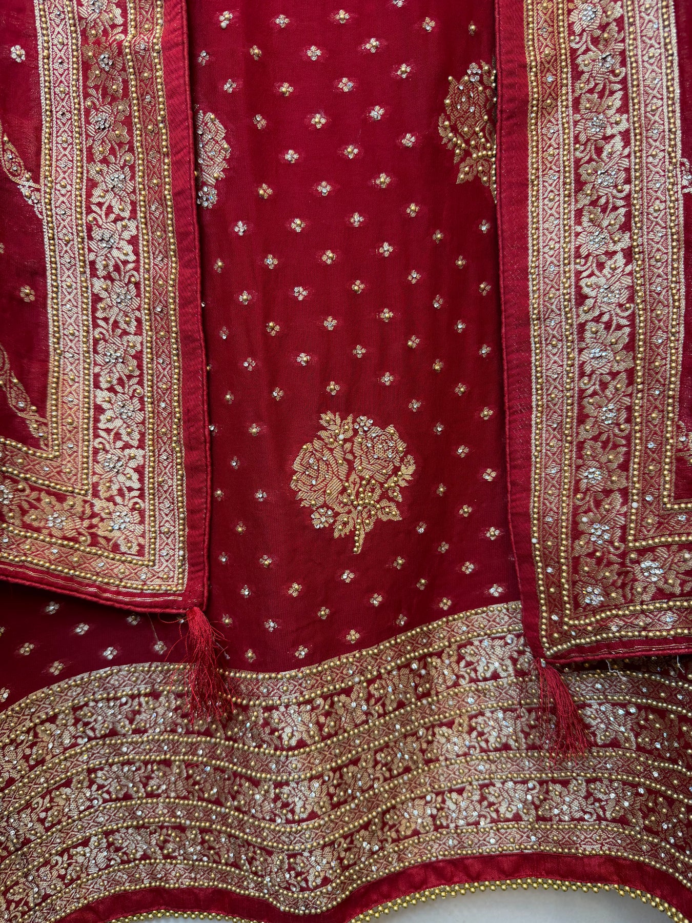 Zehvika – Maroon Khadi Georgette Banarasi Suit